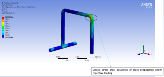 1. Stress Localization Analysis: Bends and discontinuities showed signs of crack initiation under repeated loading.